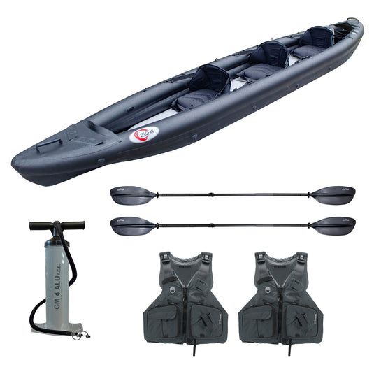 Das Zelgear Spark 520 ist das größte Modell der Spark Reihe und das längste Luftkajak in unserem Sortiment. Für große und kräftige Personen ist dieses Kajak perfekt geeignet und bietet mit seinen super bequemen Sitzen herausragenden Komfort. Dank des herausnehmbaren Dropstitch-Bodens ist eine langfristige Nutzung möglich, da dieser selbst nach Jahren bei etwaigen Schäden einfach ausgetauscht werden kann. Die Seitenschläuche werden mit einem Druck von 0,25 bar aufgepumpt. Richtig Spaß macht das Zelgear Spark 520 erst mit Steueranlage.